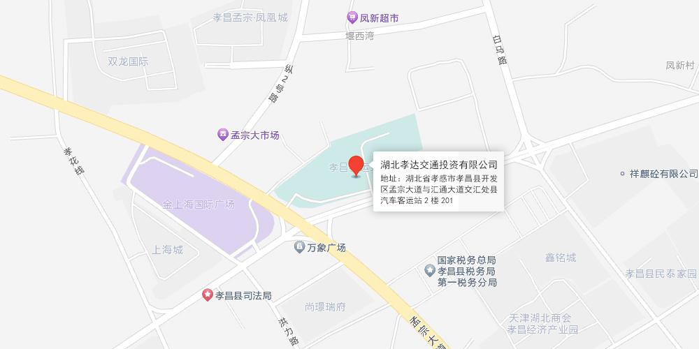 - 公司地址:湖北省孝感市孝昌縣開發(fā)區(qū)孟宗大道與匯通大道交匯處縣汽車客運站2樓201