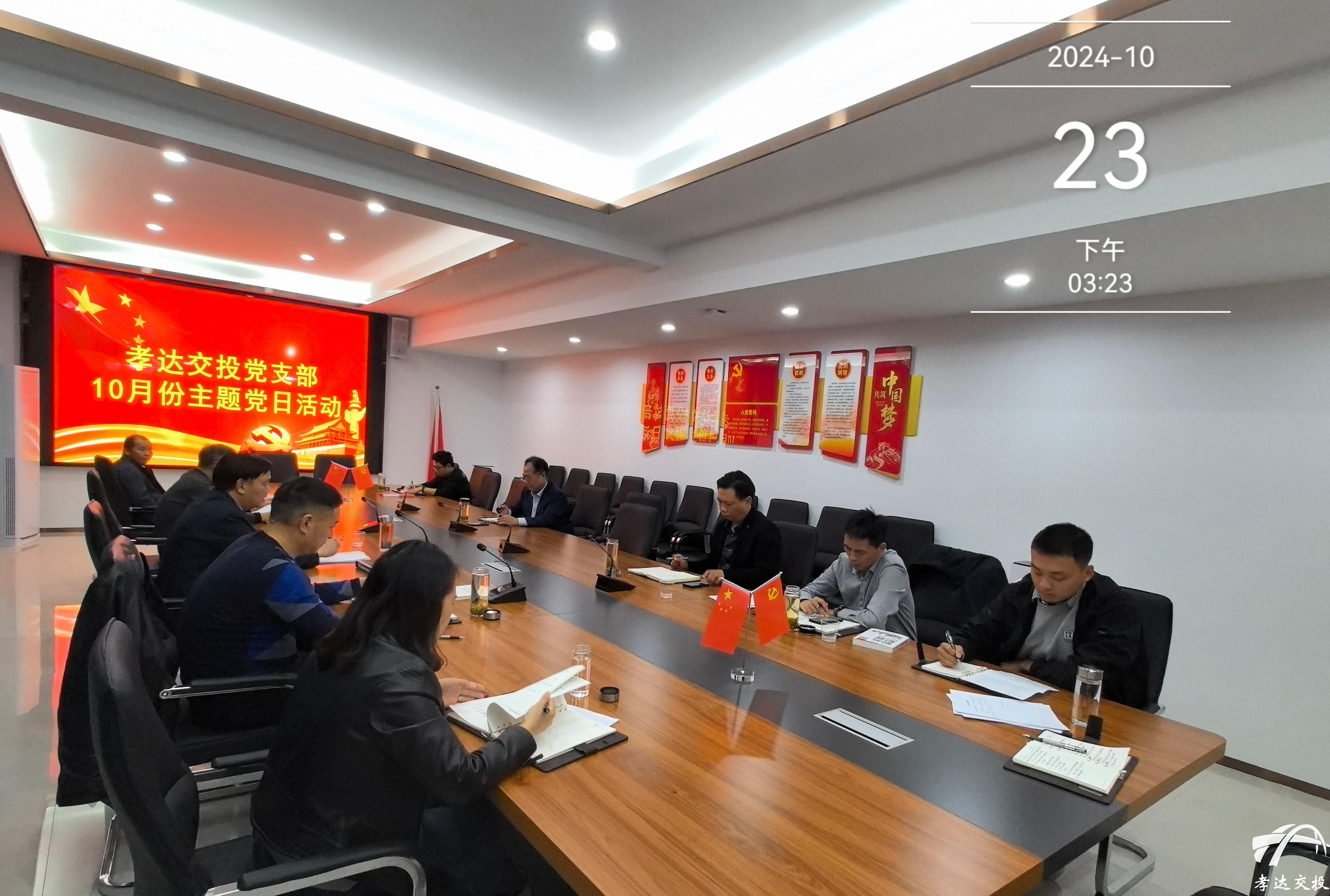 為加強(qiáng)黨員隊伍思想建設(shè)和組織建設(shè),進(jìn)一步增強(qiáng)黨組織凝聚力,2024年10月23日下午,湖北孝達(dá)交通投資有限公司黨支部在公司二樓會議室開展10月主題黨日活動,會議由黨支部書記何有為主持。