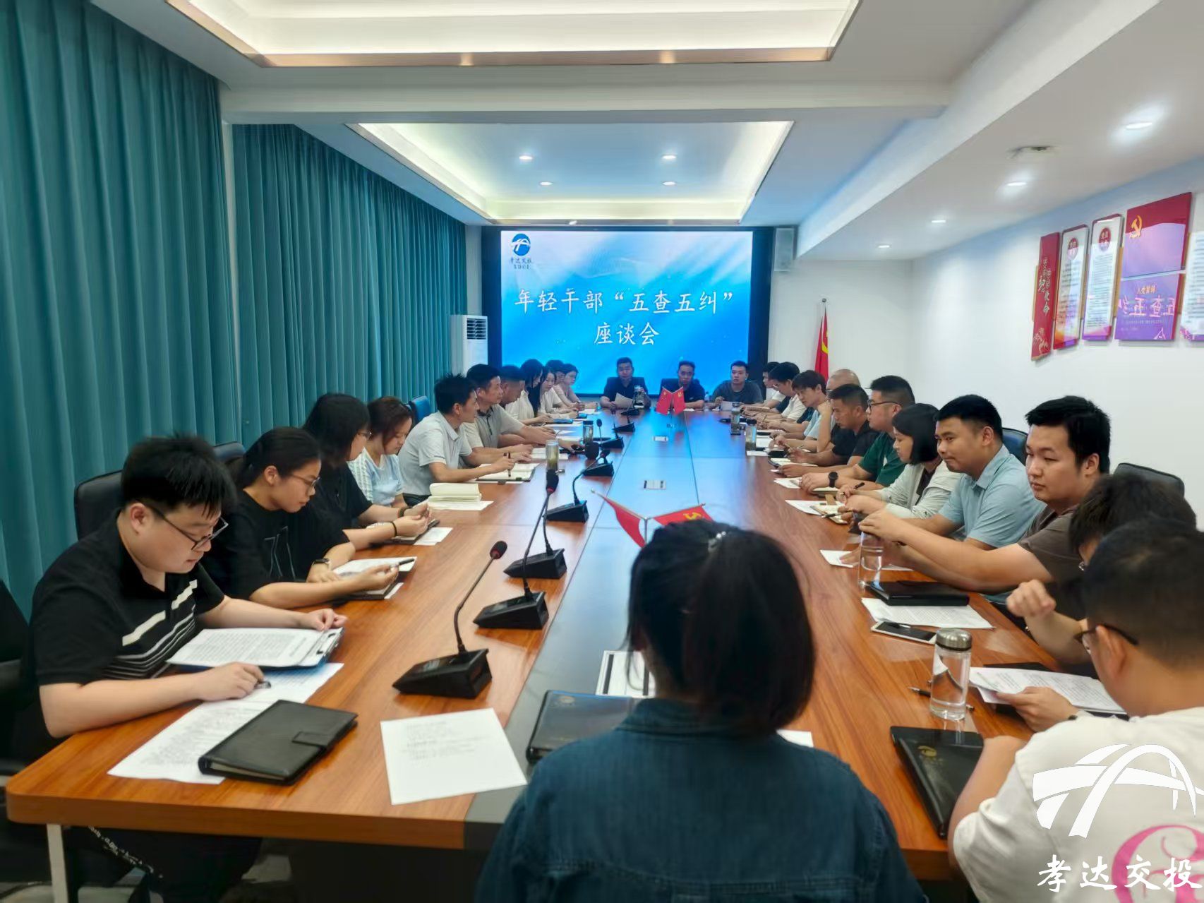 為進一步加強對年輕干部的教育、管理和監(jiān)督,引導其系好廉潔從業(yè)“第一粒扣子”,8月5日,孝達交投組織27名35歲以下年輕干部召開座談會。座談會聚焦年輕干部思想動態(tài)、作風表現(xiàn)、“五查五糾”等情況,進行了一次深入的“政治體檢”和思想洗禮。公司紀委書記洪劍東,副總經(jīng)理殷國勝、張鋒出席會議。